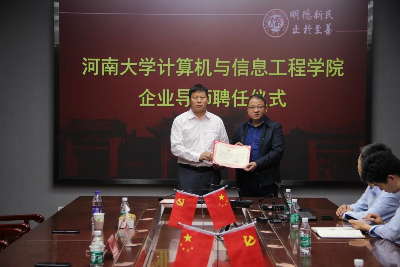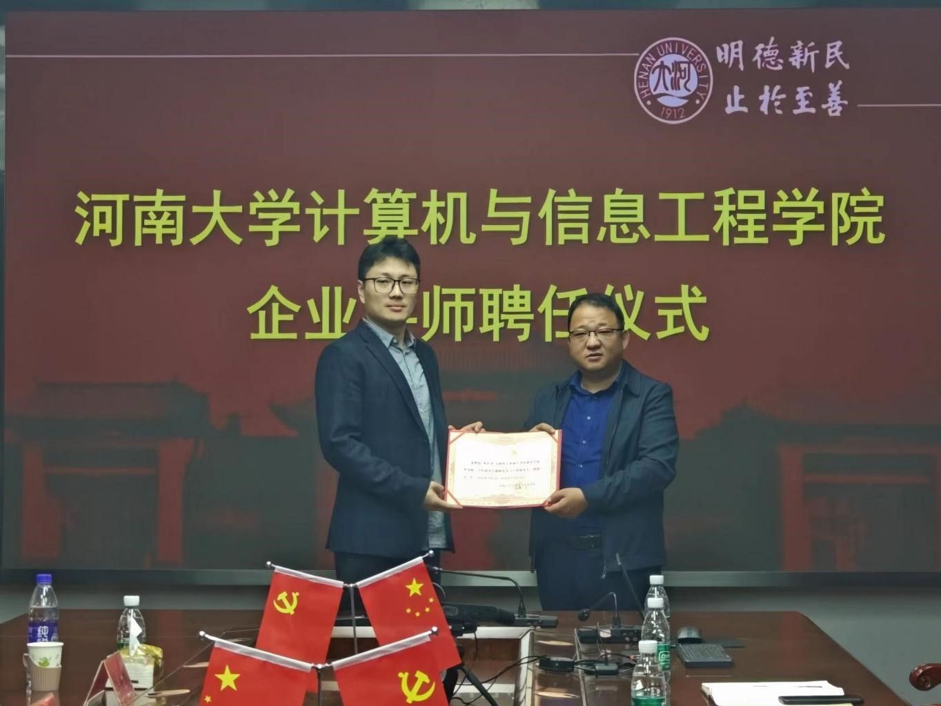 周志民为刘书起、郭宗林颁发了校外企业导师聘书。韩道军介绍了学院在学科建设、专业设置、人才培养、科学研究等方面情况,对深圳蓬莱智数公司给予学院的大力支持表示感谢,并期待未来双方能够在学生联合培养、科技研发、项目牵引等方面开展更深度合作,实现校企共赢。刘书起深情回忆自己在校学习的难忘经历,对母院发展成绩由衷的表示祝贺。今后将会根据自身情况,尽最大可能给学生提供实习就业岗位,积极开展各方面合作,为母院发展贡献力量。