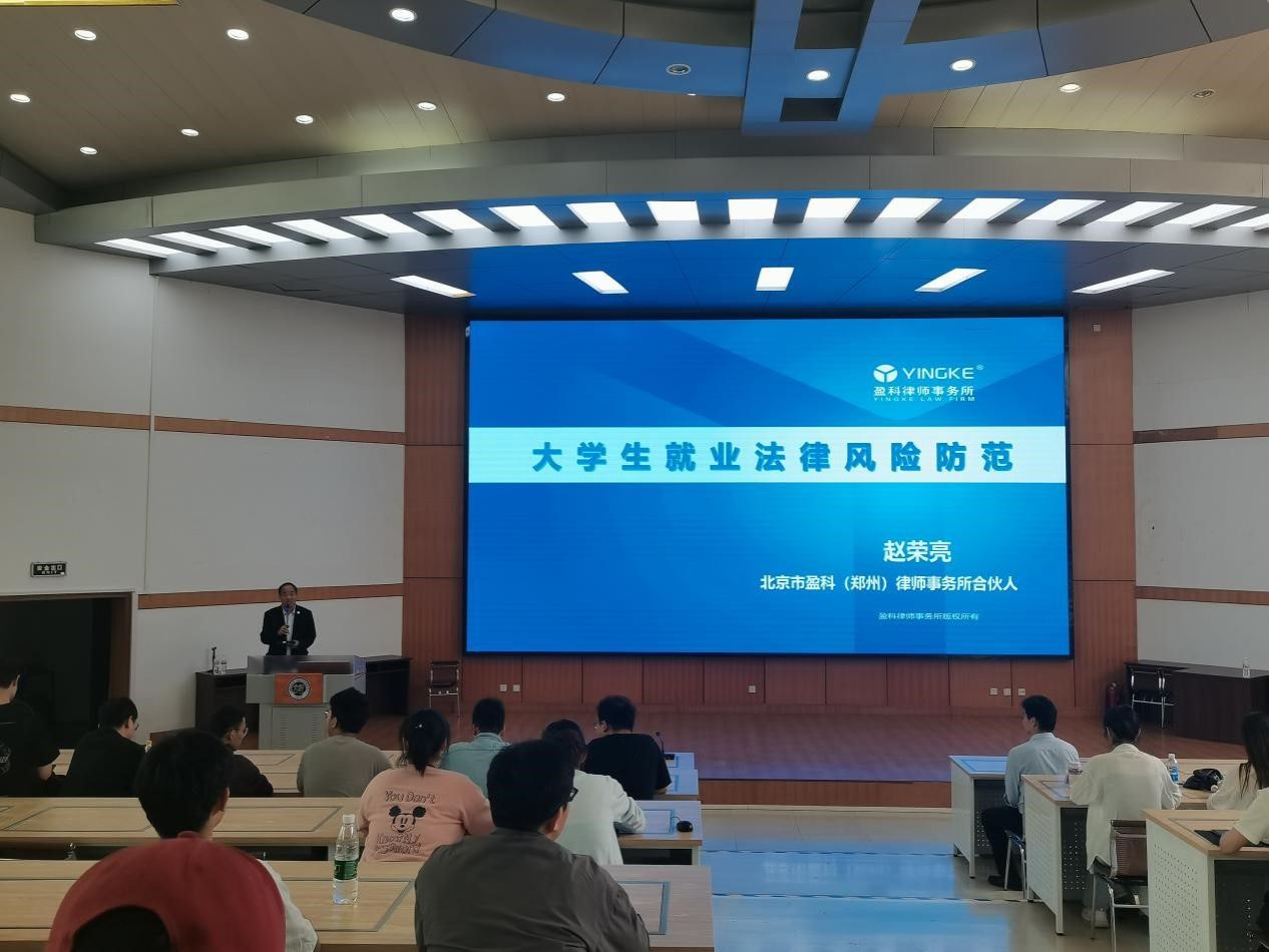 2024年4月12日下午,黄瓜视频 邀请北京市盈科(郑州)律师事务所合伙人赵荣亮律师,在学院201会议室,为黄瓜视频 毕业生作《大学生就业法律风险防范》的专题讲座,讲座由学院党委副书记张大帅主持。学院全体毕业年级本科生、研究生以及其他年级学生代表参加会议。
