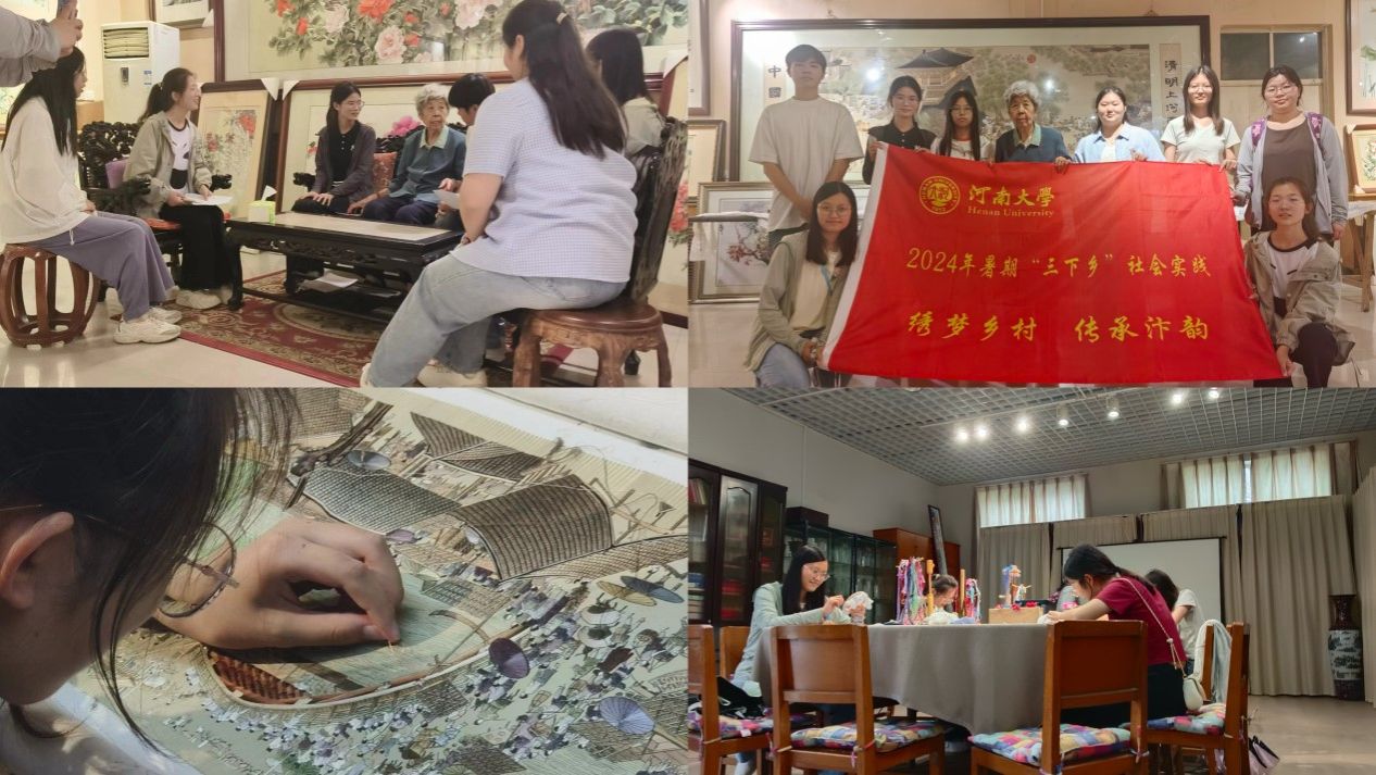 74日至10日,学院“绣梦乡村,传承汴韵”社会实践团队在广泛查阅相关文献资料的基础上,通过实地参观汴绣艺术博物馆、考察工坊,深入感受国家级非物质文化遗产——汴绣的历史底蕴和艺术魅力,并与汴绣的传承人王素花进行面对面交流和深度访谈。为了更直观地理解汴绣的艺术精神和技巧,团队成员亲身体验汴绣的制作过程,进一步加深了对传统文化的尊重和热爱。在征得相关工作人员同意后,实践团队还拍摄了宣传短片,并通过社交媒体平台积极传播,推动汴绣文化在青年群体中知名度的提升,促进汴绣艺术的传承与发展。