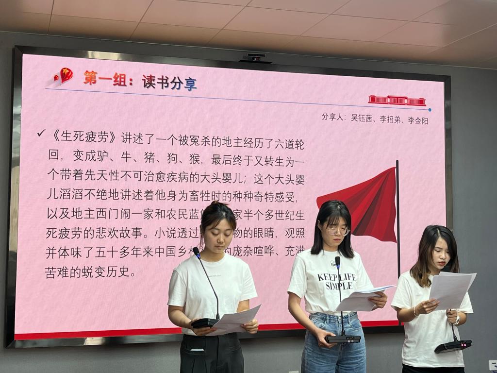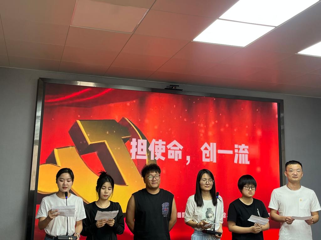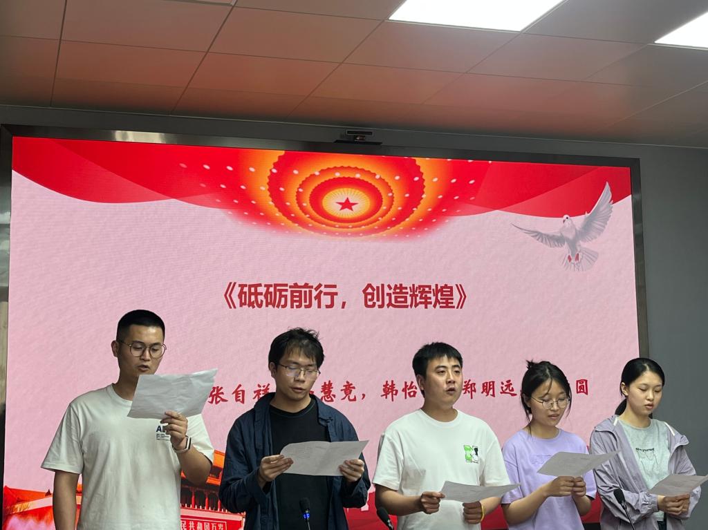 支部成员分为五组精心准备,各小组成员紧扣演讲主题,立足自身学习实际,结合所学所思所悟,运用读书分享、小组朗诵、演讲等多种形式感悟担当。主题演讲全面展示了支部党员勇担使命、勇攀新高的决心和勇气。