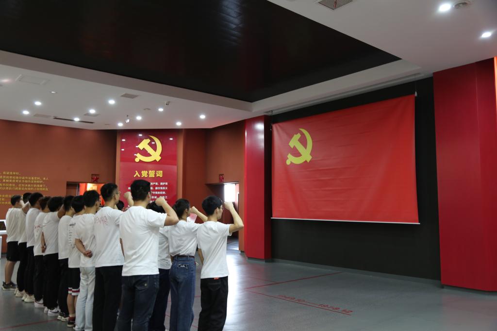 随后,支部全体成员来到宣誓厅,厉丹阳带领支部全体党员庄严宣誓。全体党员面向鲜红的党旗,高举右拳,再次铿锵有力地许下了对党忠诚、永不叛党的坚定承诺。