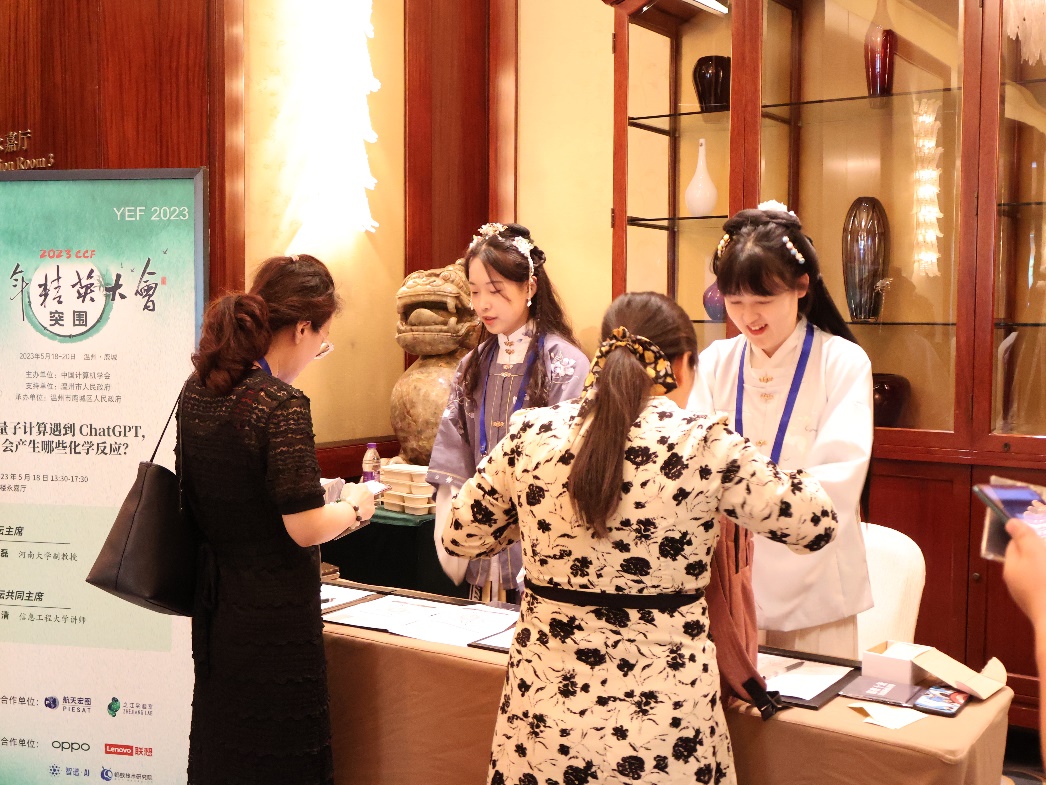 河南作为中华民族和华夏文明的发祥地,绘就了光辉灿烂的文明画卷。如今,在传统文化逐步被打捞、被重视、被放大的当下,汉服悄然走进公众的生活,传统与现代融合,黄瓜视频 研究生赵一鸣、张若阳身着汉服,参与到CCF YOCSEF郑州分论坛组织的一场题为“当量子计算遇到ChatGPT,会产生哪些化学反应?”技术论坛的相关工作中,展现中华优秀传统文化的活力,让汉服之美也进一步点燃我们的文化自信。
