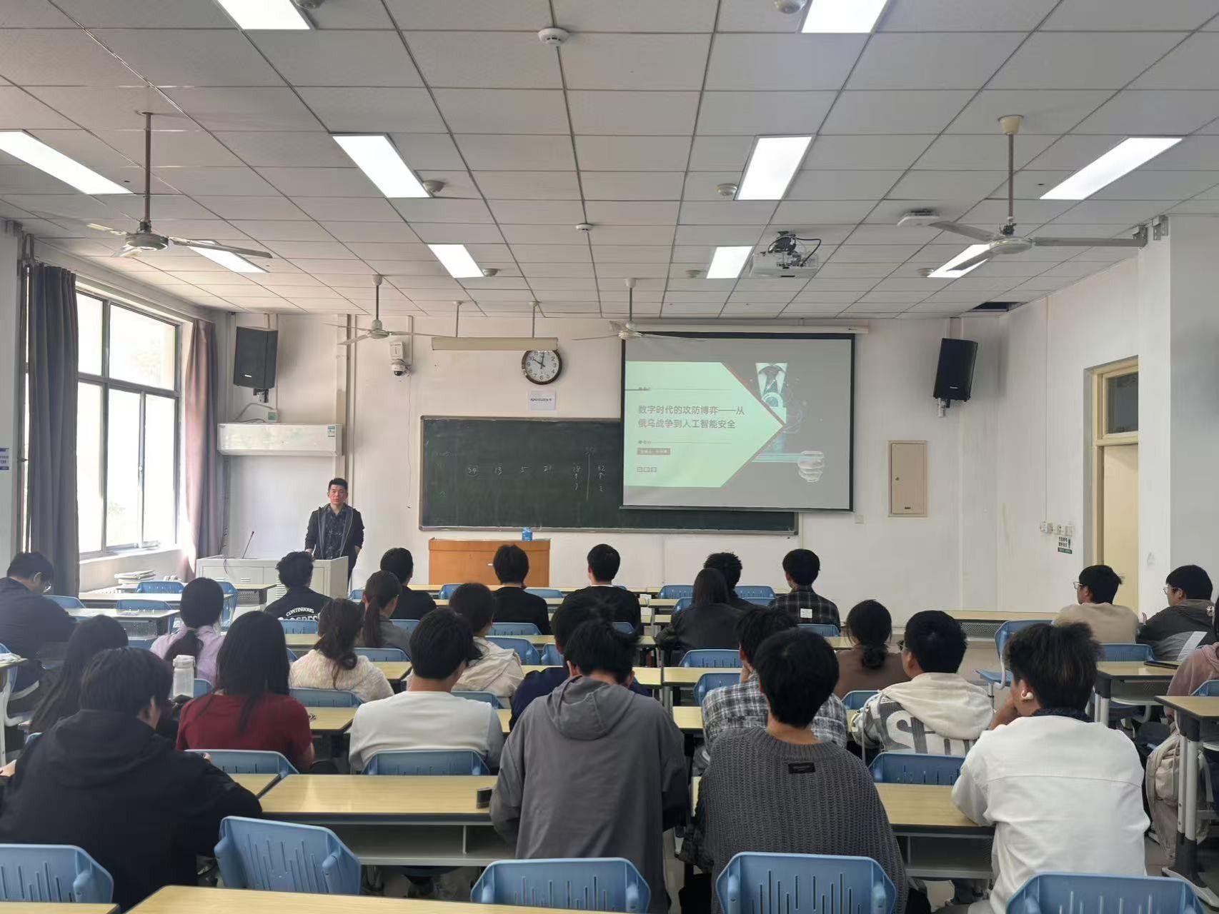 范林坤老师以“数字时代的攻防博弈”为切入点,围绕国家安全、信息安全的重要性展开讲解,并结合实际案例,全面分析了国内外安全形势,帮助同学们构建起对国家安全系统而深刻的认知。他强调到,国家安全是民族复兴的根基,事关国运兴衰和人民福祉,与我们每一个人息息相关。