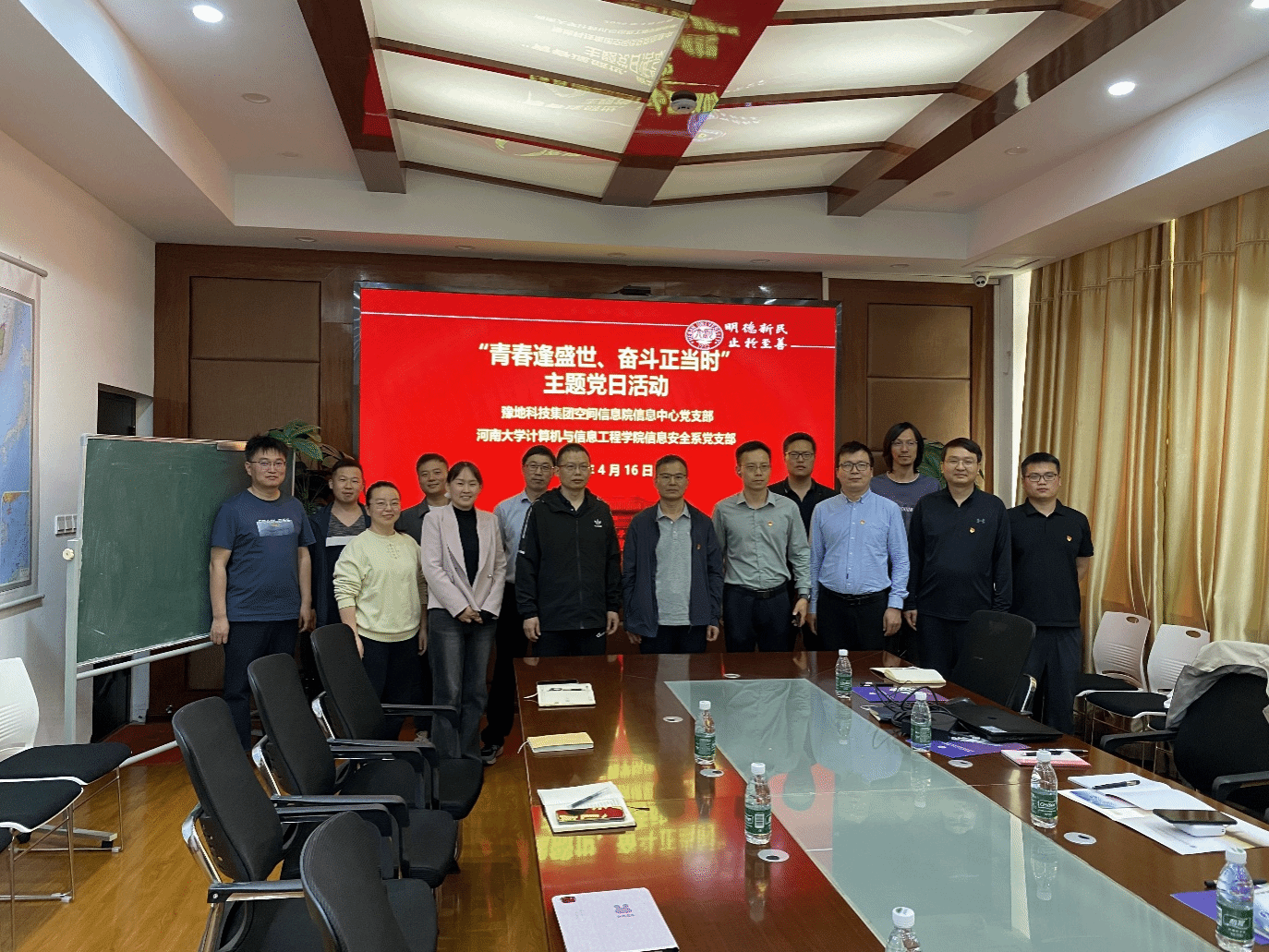 信息安全系党支部与豫地科技集团空间信息院信息中心党支部联合开展“青春逢盛世、奋斗正当时”主题党日活动,旨在推动科技创新和产业创新深度融合,以昂扬的青春斗志和不懈的探索追求,为高质量发展注入红色动能。本次活动由计算机信息工程学院副院长葛强主持。