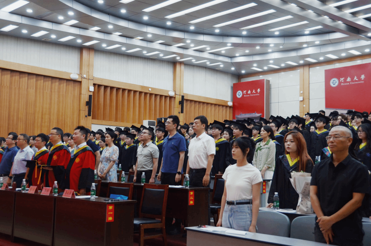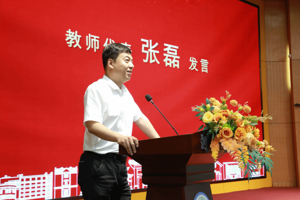 教师代表张磊代表学院全体老师对顺利完成学业的同学们表示衷心的祝贺!并对毕业生提出四点期望:一要永葆河大精神,胸怀家国;二要坚持终身学习,紧跟时代;三要脚踏实地奋斗,勇于担当;四要做好人生规划,明晰方向。并祝福毕业生毕业快乐,愿大家以河大内核驱动未来,常回母校看看。