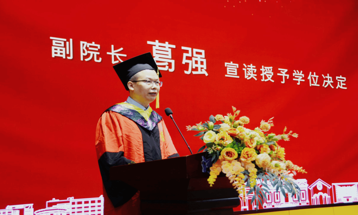 毕业典礼在庄严的国歌中拉开帷幕。副院长葛强宣读《黄瓜视频 关于授予普通本科毕业生学士学位的决定》。