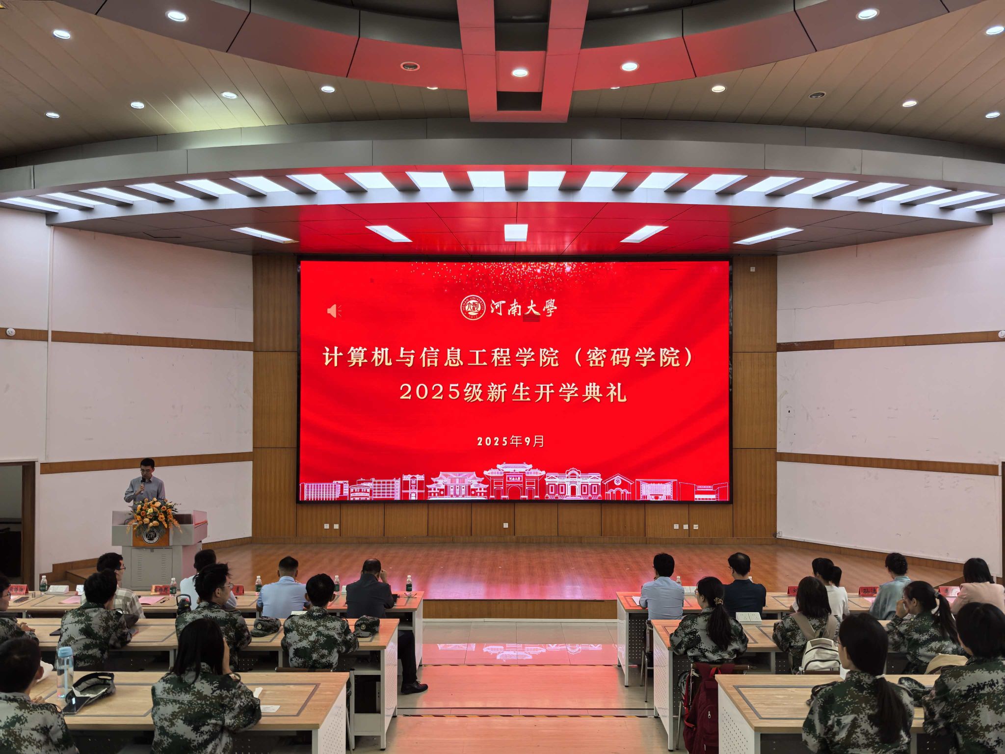 开学典礼在雄壮的国歌声中拉开序幕。执行院长韩道军对2025级本科生表示祝贺和欢迎。他详细介绍了学院的发展历程和学科建设成果,以“过渡期”“可能性”和“不落后”三个关键词寄语新生,鼓励大家尽快适应大学生活,转变学习方式,主动探索、广泛尝试,找到自己的兴趣点,并树立终身学习的信念,努力成长为适应时代需求、兼具技术能力与人文温度的计算机人才。