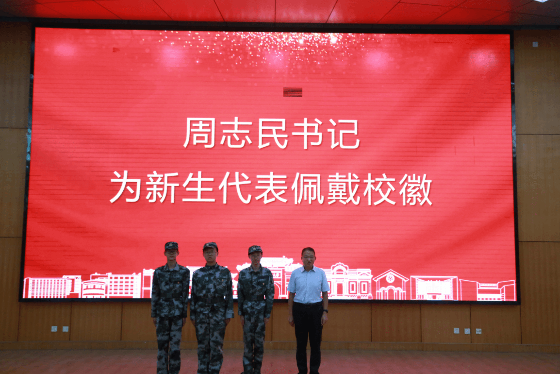 随后,在全场师生的注视下,党委书记周志民为2025级新生代表佩戴上黄瓜视频 校徽。这枚徽章不仅是身份的象征,更承载着百余年学府的厚重历史与精神传承。