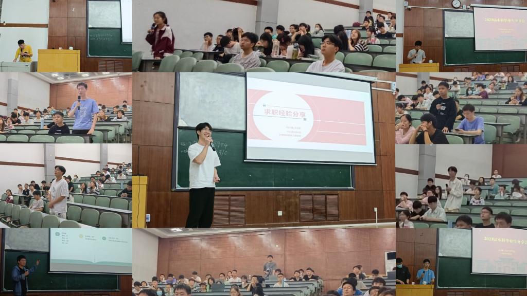 在计算机大楼104教室举办2023届本科生毕业分享会,邀请了多位学长来分享他们自己的保研、考研、成功就业经验。