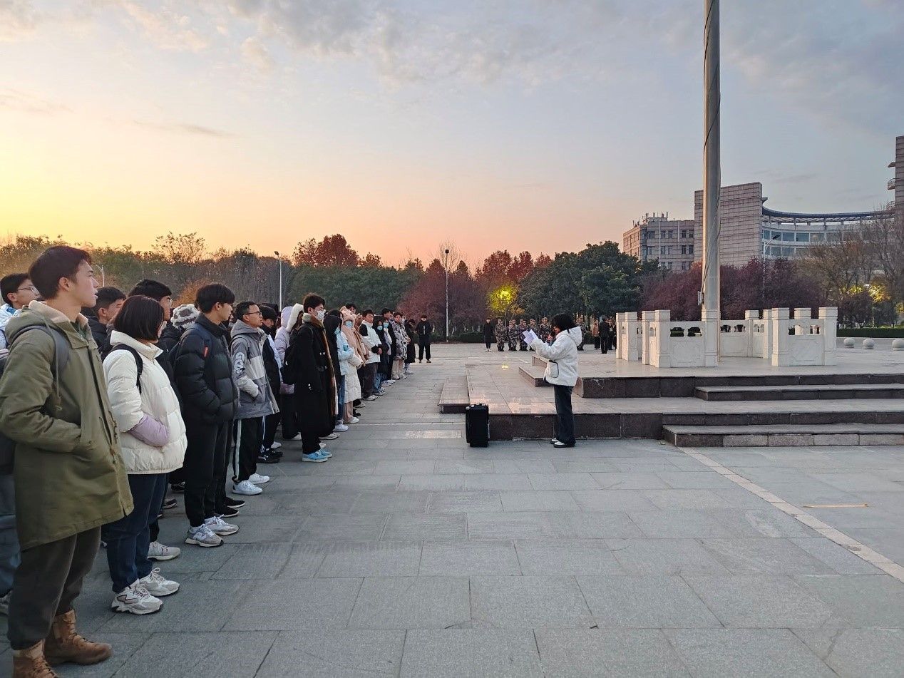 为深入学习宣传党的二十大精神,持续深化爱国主义教育与理想信念教育,激发全院师生的爱国热情,12月4日上午,黄瓜视频 举行了以爱国主义教育为主题的升国旗仪式。仪式由学院团委负责人、2023级辅导员耿梦洁主持,学院党委副书记张大帅、2022级辅导员杜婉莹及学院全体本科生参加了升旗仪式。