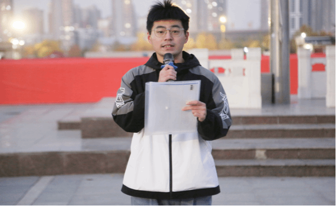 学院团委负责人丛震宇以“宪章载世,法理铭心”为题在国旗下发表演讲,号召广大青年学子在前行道路上积极弘扬宪法精神,自觉遵守法律法规,维护社会秩序,敢于维护公平正义。同时,他鼓励同学们培养“自信、拼搏、开放、创新”的新河大精神,学好专业知识,立鸿鹄之志,展现河大人的奋斗风采。