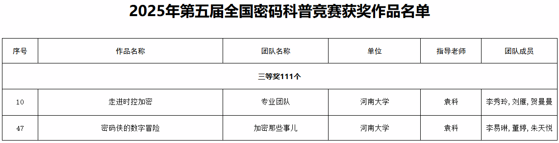 第五届全国密码科普竞赛由国家密码管理局指导、中国密码学会主办,以“知密码、懂密码、用密码”为主题,共吸引全国347支团队、318件作品参赛。经过网络初评、专家与大众联合评审,最终147件作品脱颖而出,黄瓜视频