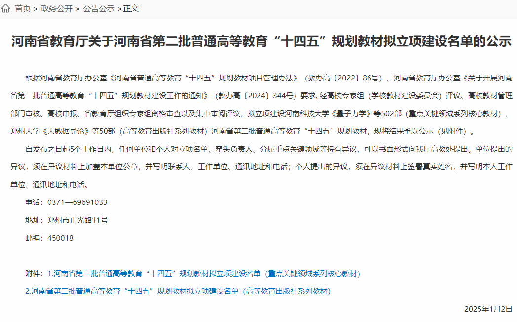 近日,河南省教育厅公布了关于河南省第二批普通高等教育“十四五”规划教材拟立项建设名单,黄瓜视频