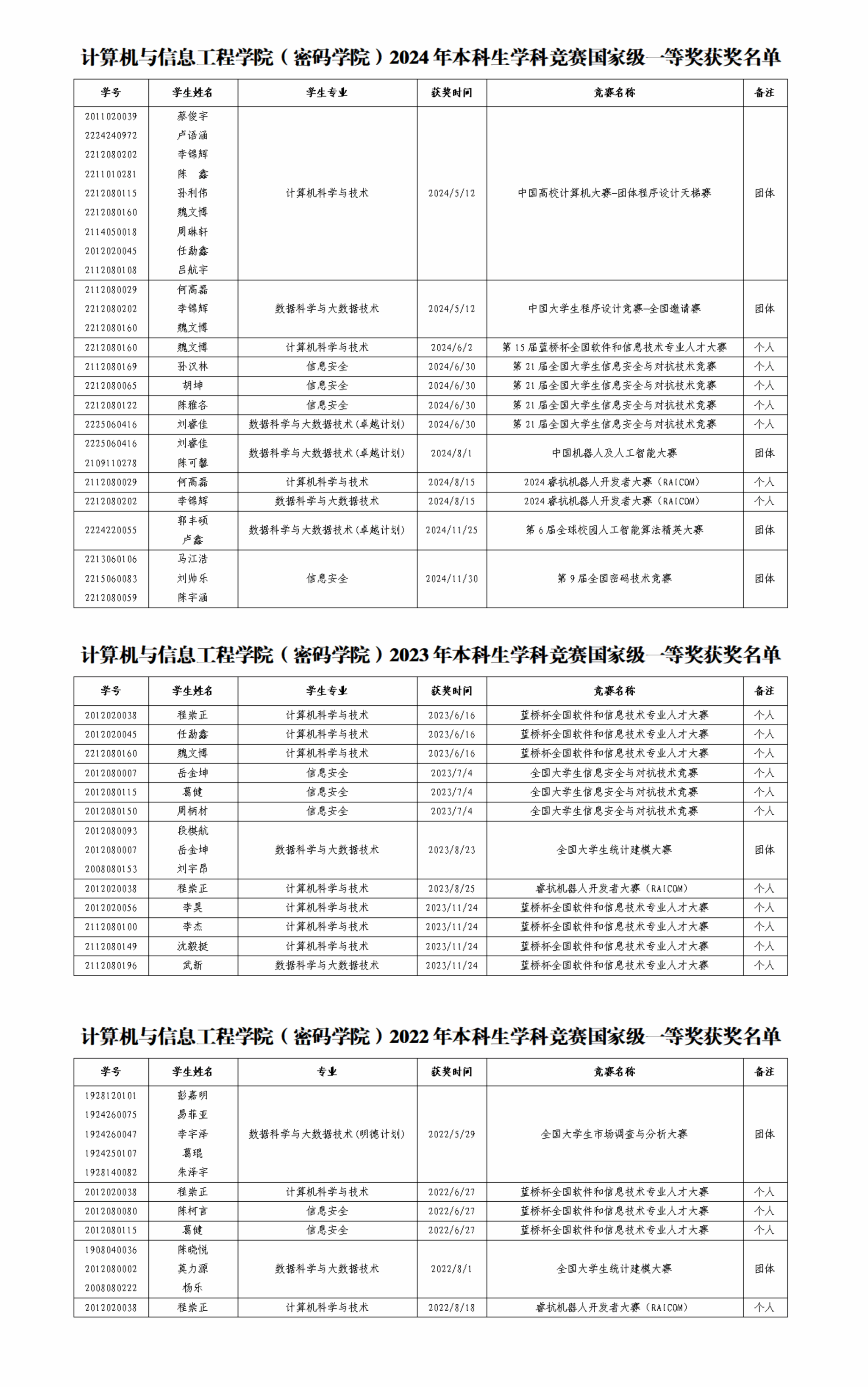 2022—2024年本科生学科竞赛国家级一等奖获奖名单